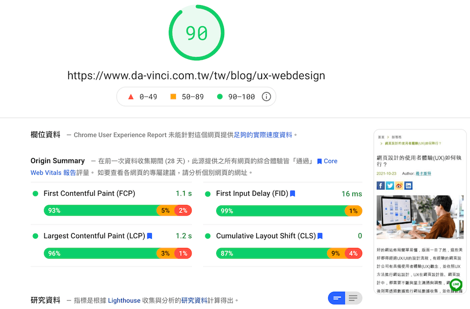 透過PSI工具測試網站架構分數